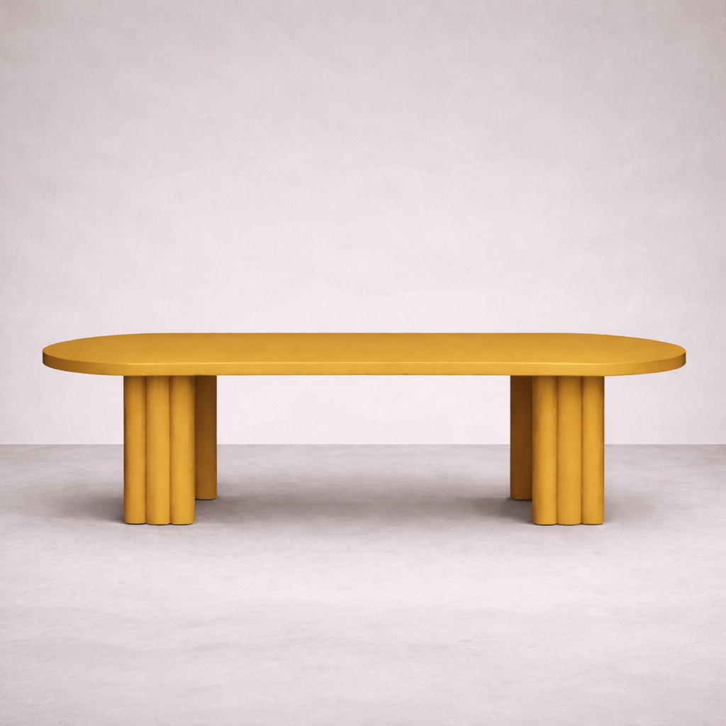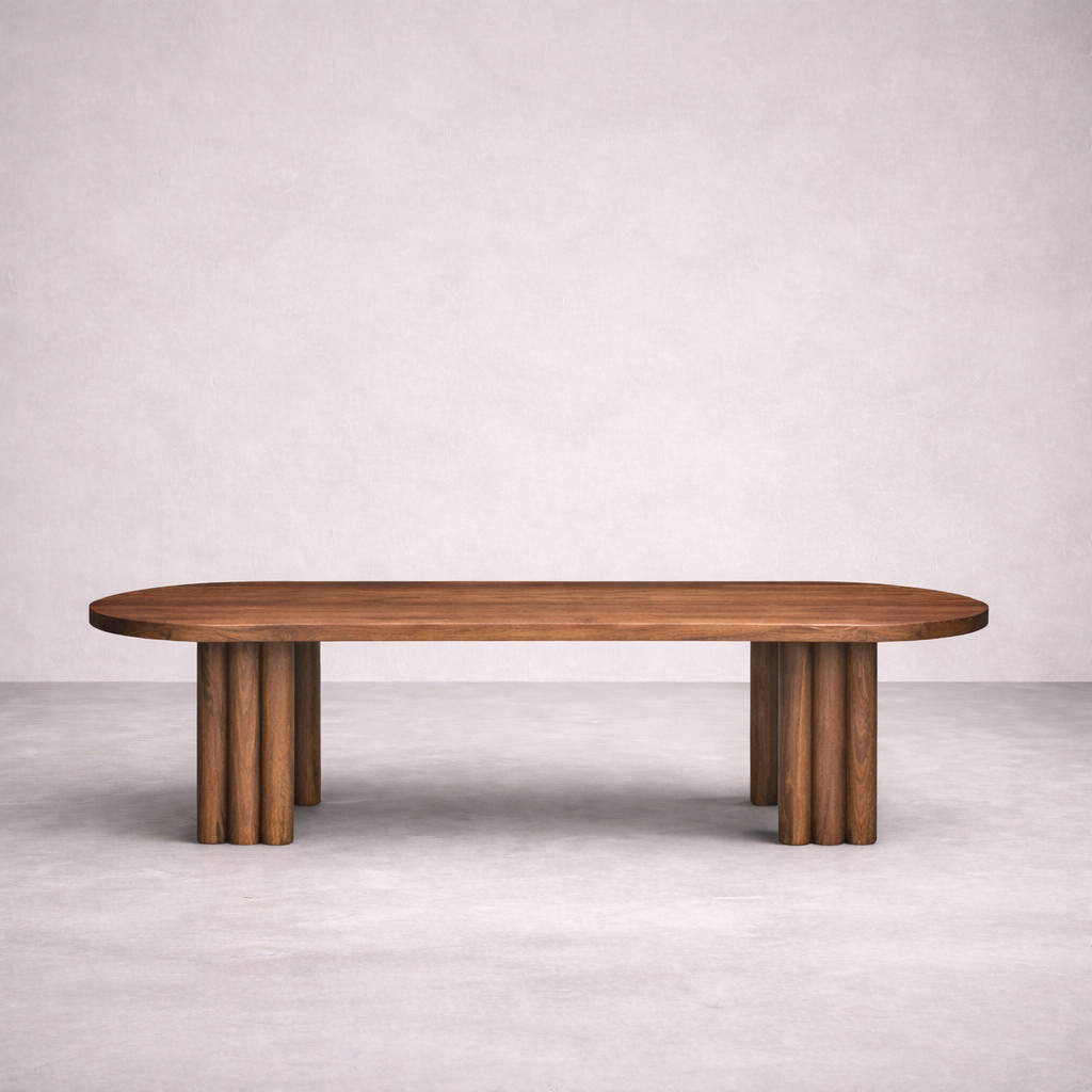 Solid wood. The table balances solidity with rhythm, where structure becomes pattern.