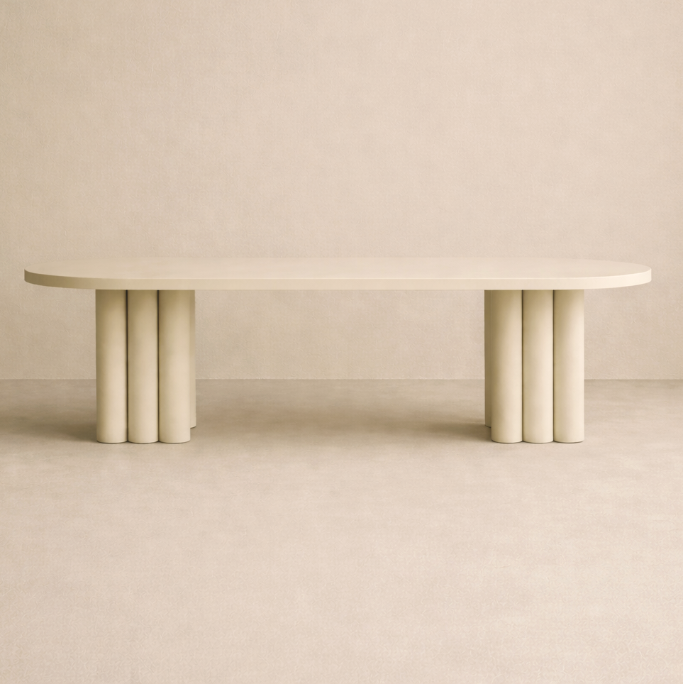 A continuous surface held by pillars, line, strength and balance. Architecture brought down to scale